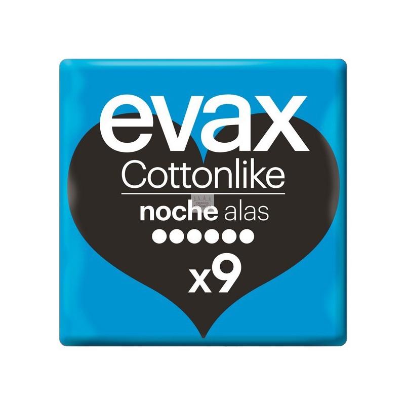 EVAX COMPRESAS HIGIENICAS FEMENINAS COTTONLIKE NOCHE CON ALAS 9 COMPRESAS