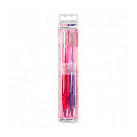 2 Cepillos GingiLacer Cabezal Pequeño PRECIO ESPECIAL Cabezal pequeño que permite una mayor precisión en el cepillado dental y Monofilamentos PBT. Especial cuidado encías El cabezal pequeño permite una mayor precisión en la limpieza dental llegand fácilmente a las zonas de difícil acceso (zonas posteriores de la boca, malposición dentaria, personas con arcada dentaria pequeña, piezas en proceso de erupción). con filamentos PBT microfinos y flexibles, que eliminan la placa dental del espacio interdental y supragingival, cuida las encías y previene su inflamación. Mango ergonómico con sistema antideslizante que evita que el mango resbale durante el cepillado. Además su innovador diseño en forma de diamante y su forma redondeada evita rozaduras y previene posibles lesiones en las encías y en la mucosa oral.Especial cuidado encías. Monofilamentos PBT microfinos y flexibles, muy cuidadosos con las encías. Arrastran la placa dental y limpian eficazmente el espacio interdental y supragingival, cuidando las encías y evitando su inflamación.